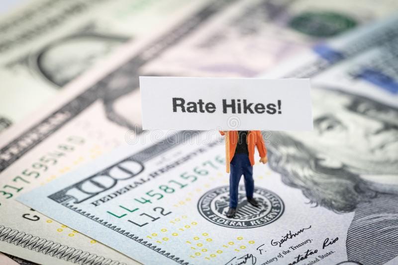 As of October, before the last Federal Funds rate hike, the Federal Funds rate was 3.08%, whereas in February, it was at 0.08%. That is a three thousand seven hundred fifty percent rise in the Federal Funds rate.