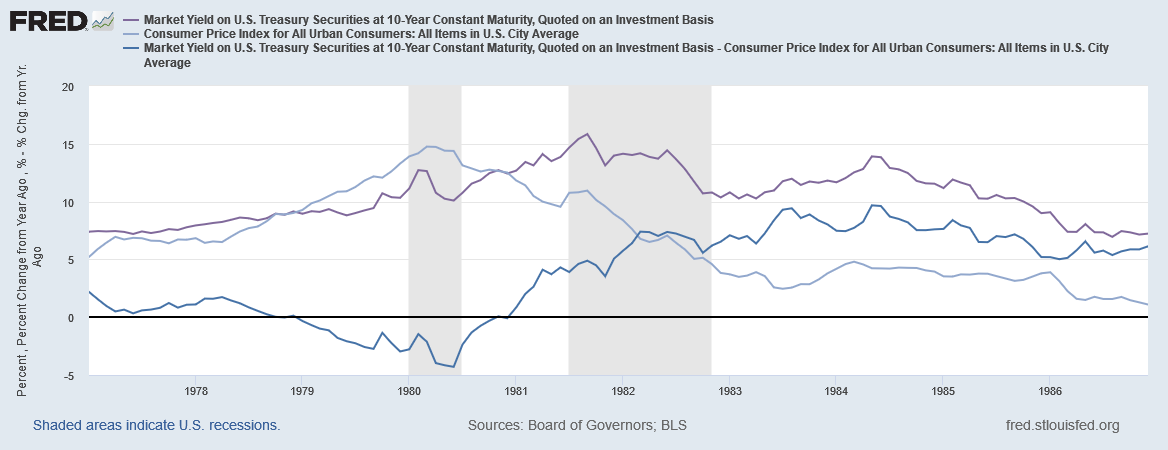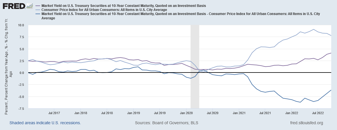 “Real Yields” are the nominal yield (stated as an annual percentage rate) less the year on year percent change in the CPI.