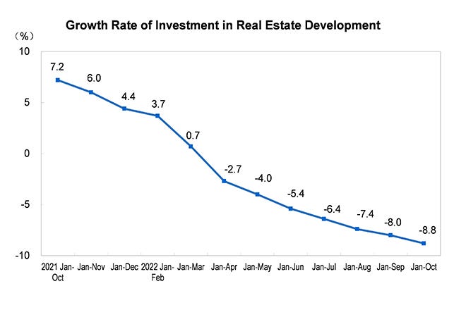 Preliminary reports indicate the real estate investment decline through November is 9.8%.