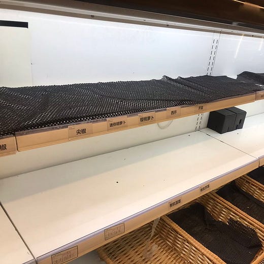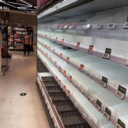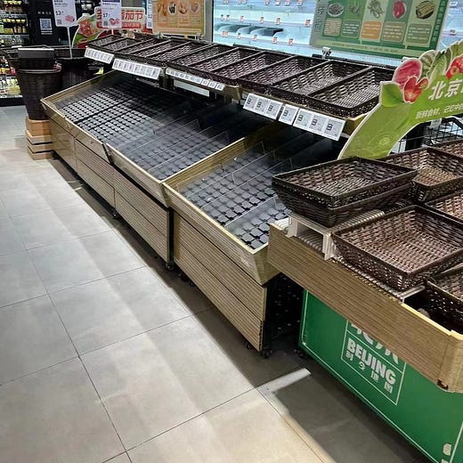 In the past 24 hours, Chinese social media has been flooded with videos and photos of bare store shelves as people stock up on food, fearing the worst.